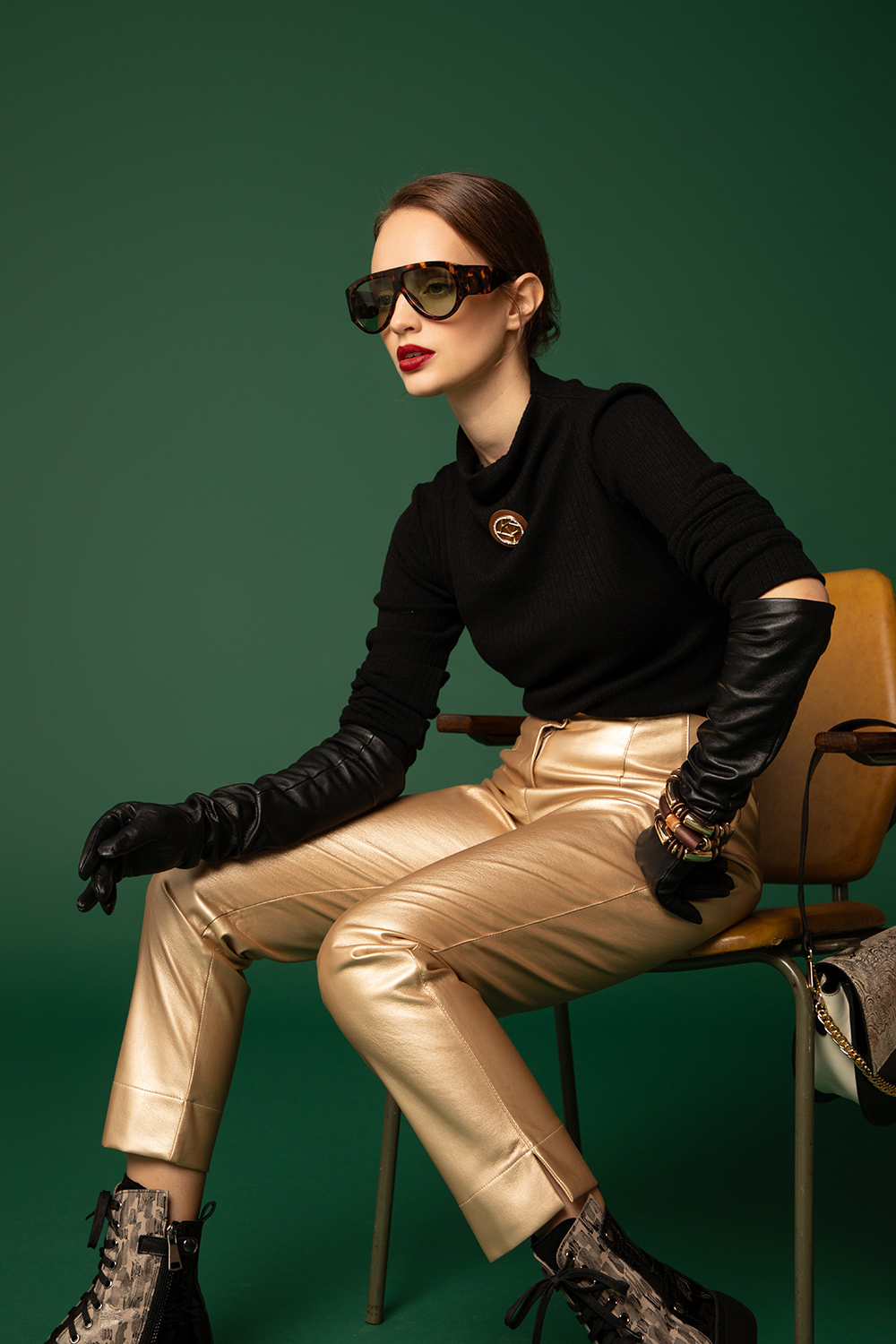 Вталена блуза от меко еластично плетиво рипс в черно. Дълъг ръкав и високо обло деколте. Ефектно лого на предницата. Подходяща както за вътрешно, така и за външно носене.