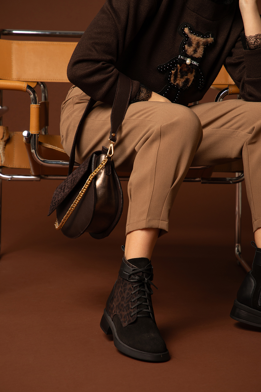 • Материал: черен велур,леопард шевро,черна напа