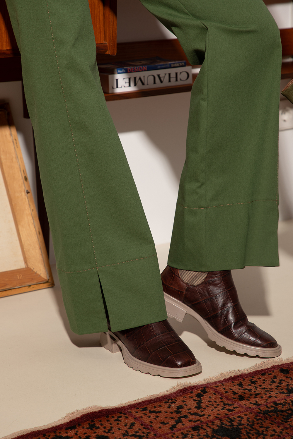 Стилни боти в топло кафяво от кожа с кроко ефект. Средна височина с ластик встрани.