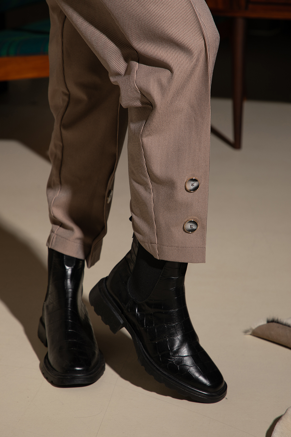 • Материал: черна кожа мат с ефект кроко + велур + ластик