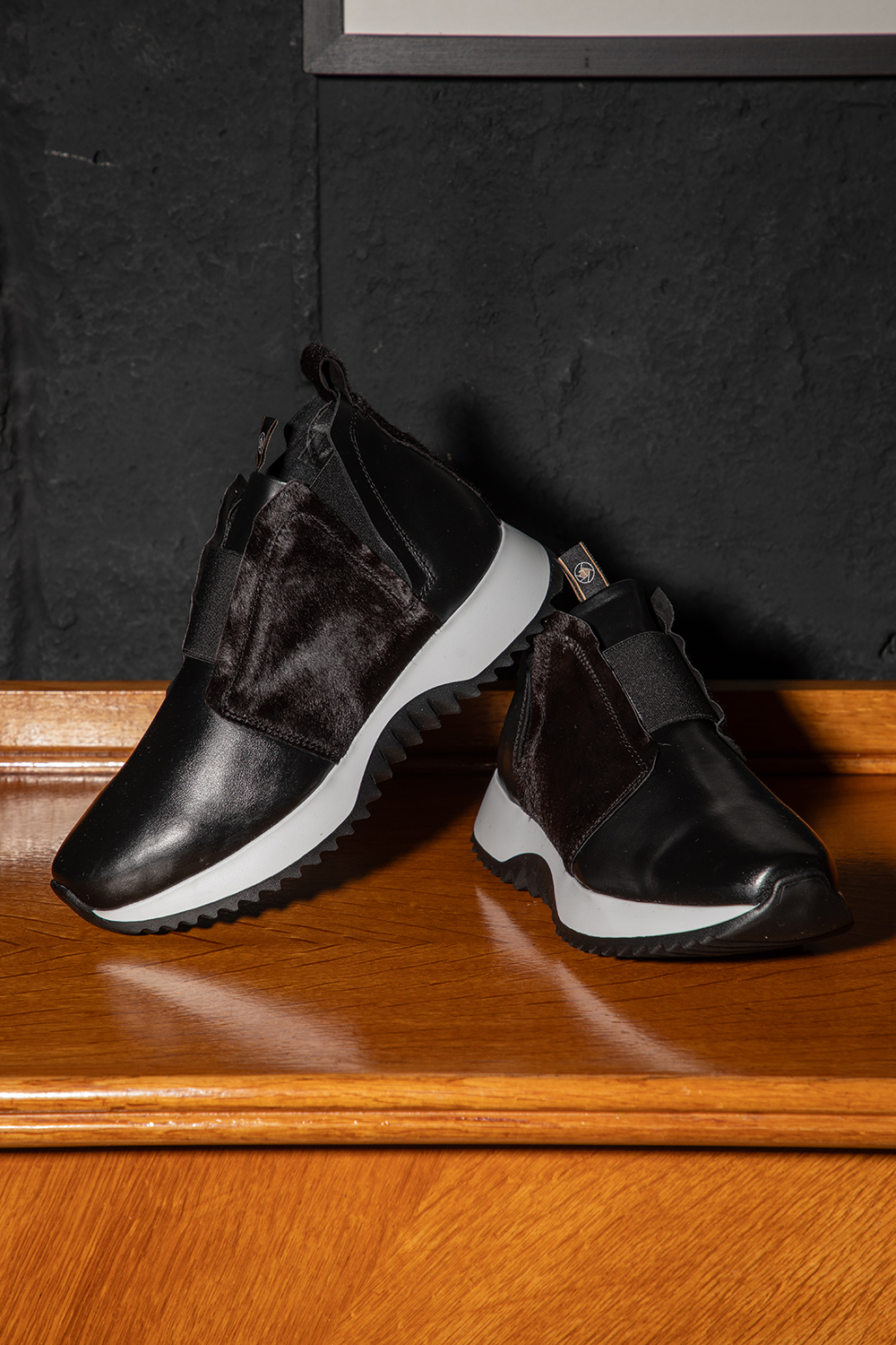 Спортно-елегантни ниски боти от 100% естествена кожа напа и пони в черно. Изчистен стилен модел с ластици встрани и комфортна посметка.