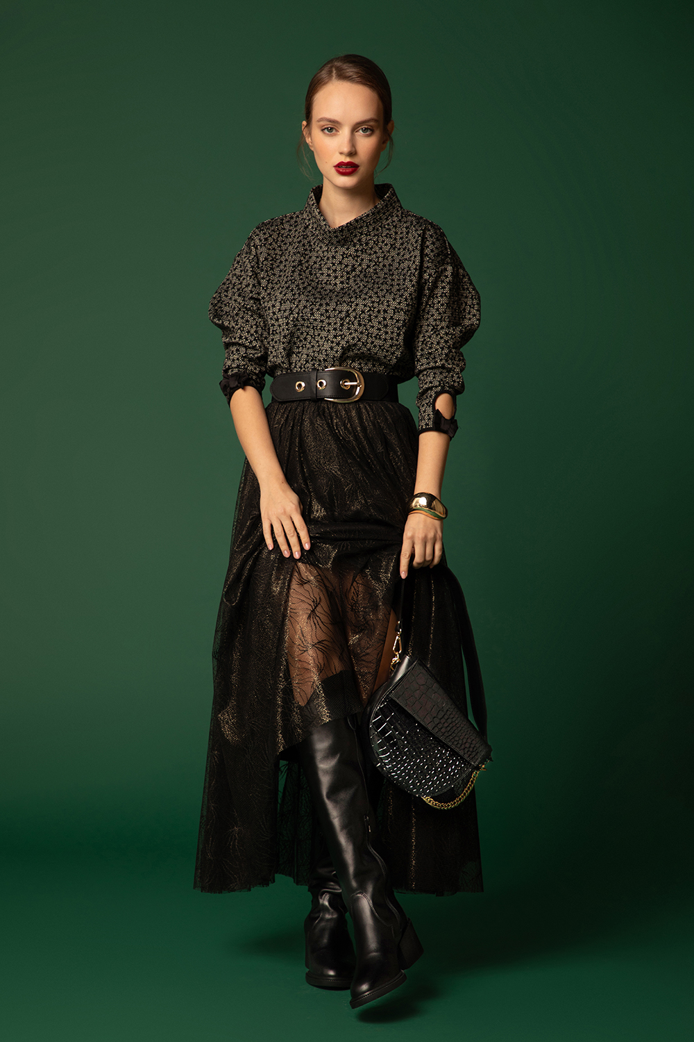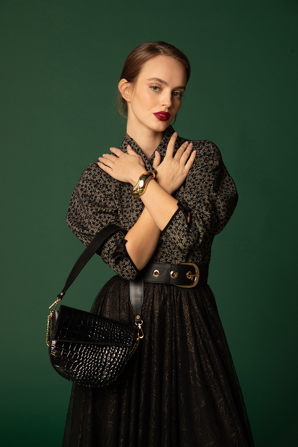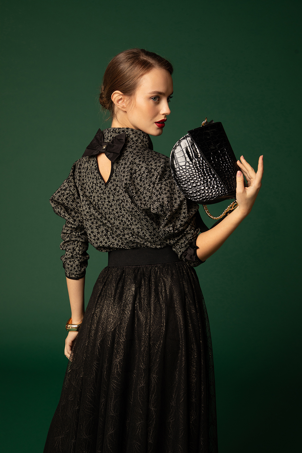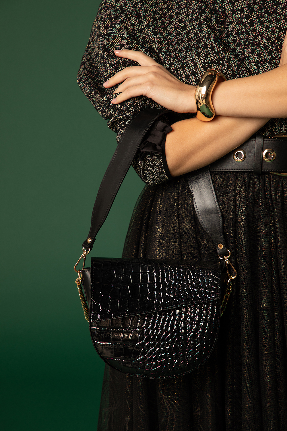 • Материал: черна напа, кроко лак