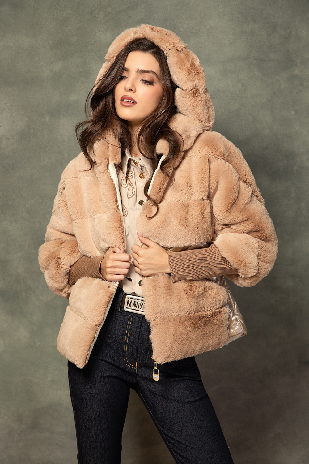 Палто тип яке от еко косъм