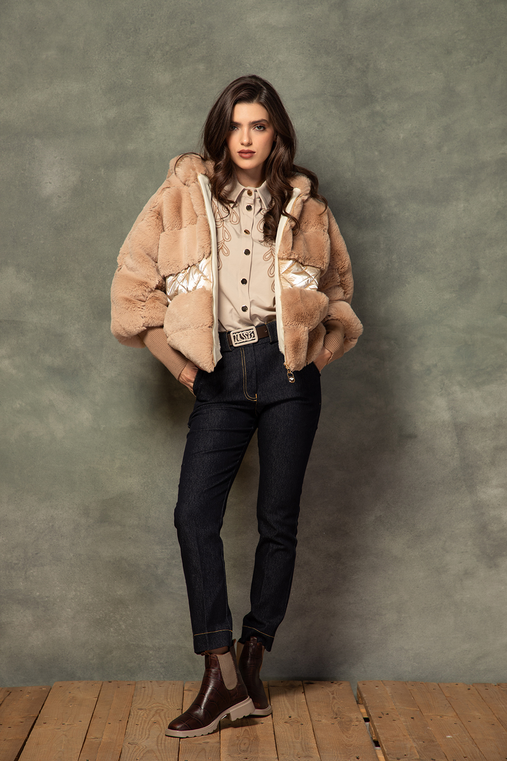 Елегантна класическа риза от приятна еластична материя с високо съдържание на памук в светло бежово. Леко свободен силует с ефектна бродерия на предницата. Закопчаване посредством пластрон с тик так копчета и яка. Дълъг ръкав с маншет.