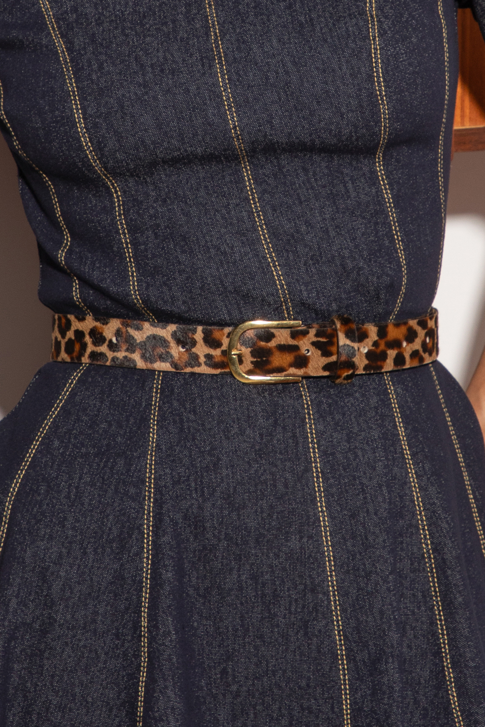 Стилен колан от висококачествена естествена кожа пони в леопардов принт. Закопчаване посредством метална тока.