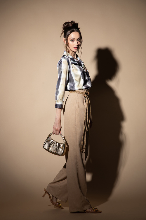 Ефектен колан в светло бежово-кафяво, златиста тока и четири въженца.