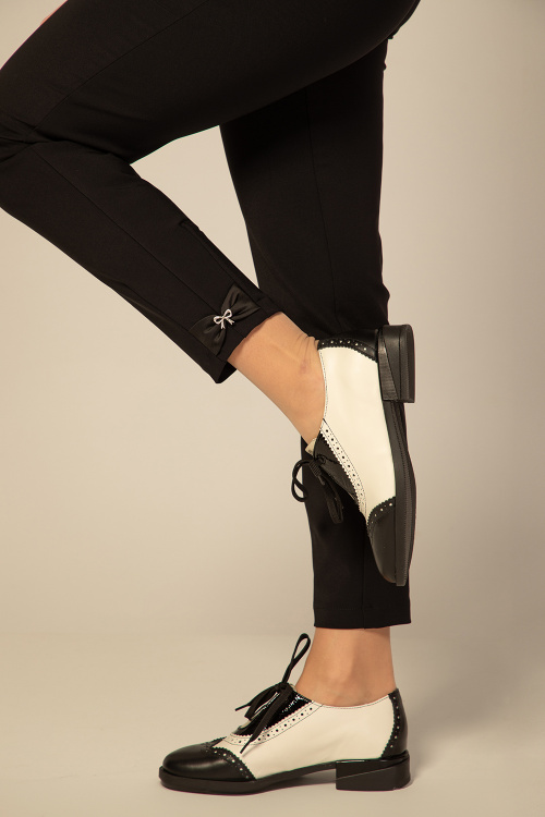 Елегантни обувки от висококачествена естествена кожа. Ефектен дизайн в екрю и черно със златист акцент и връзка.