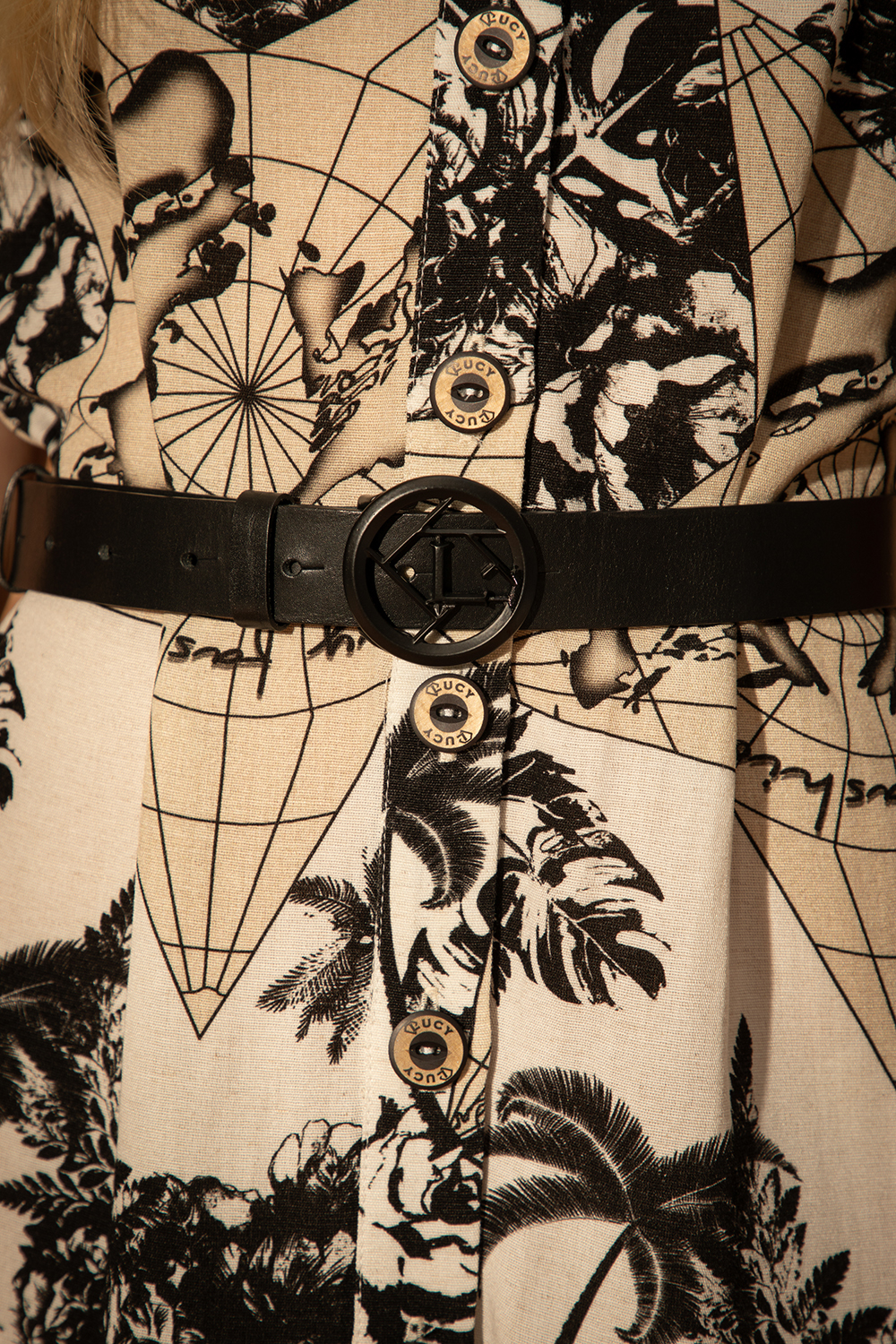 Спортно-елегантна рокля от приятна материя смес от лен и вискоза в ефектен авторски принт. Леко свободен силует с предно закопчаване посредством копчета и яка. Извит подгъв с малки цепки встрани.