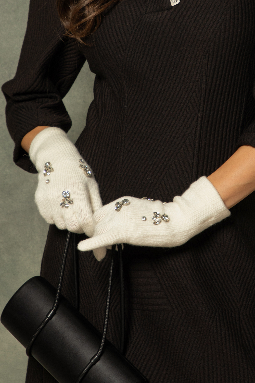 Топли ръкавици от меко плетиво в екрю и декоративни кристалчета.
